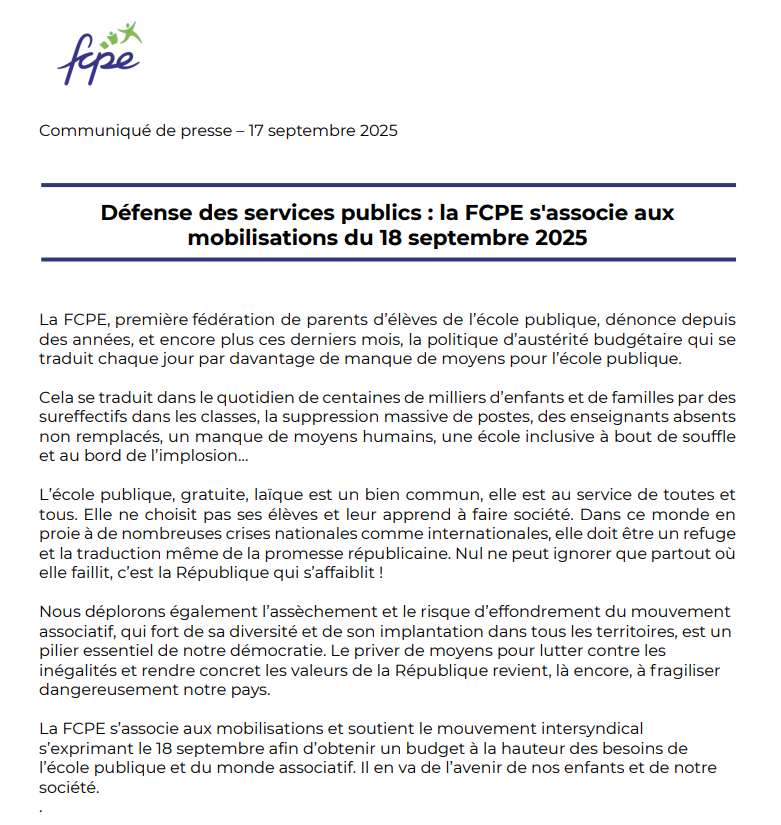 La FCPE 13 s'associe aux mobilisations de ce jour