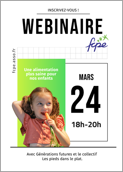 La FCPE a le plaisir de vous inviter à un webinaire organisé en partenariat avec Générations futures et le collectif Les pieds dans le plat, le 24 mars 2026 de 18h à 20h, dans le cadre de la Semaine pour les alternatives aux pesticides.