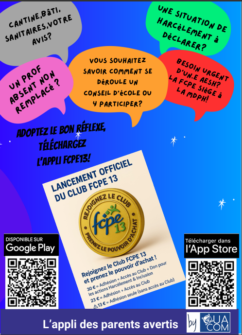 affiche appli + CLUB FCPE13 disponibles en pdf dans "vie des conseils"