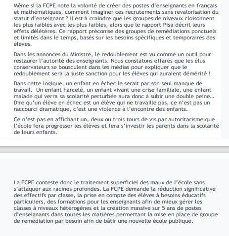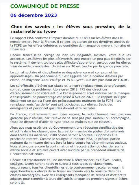 Annonces du Ministre: communiqué FCPE