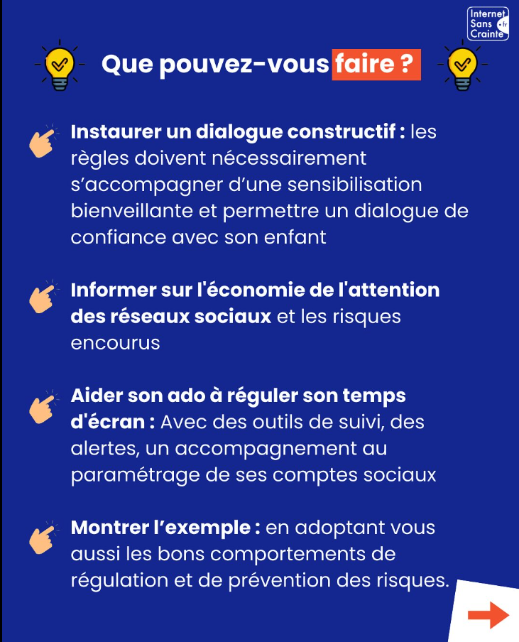Aux parents, pour instaurer un dialogue bienveillant et constructif.À l’école, qui reste l’institution la mieux placée pour sensibiliser collectivement.Aux plateformes, qui doivent prendre leurs responsabilités pour protéger les mineurs.Chez Internet Sans Crainte, nous accompagnons ce mouvement avec des ressources pour tous les âges :