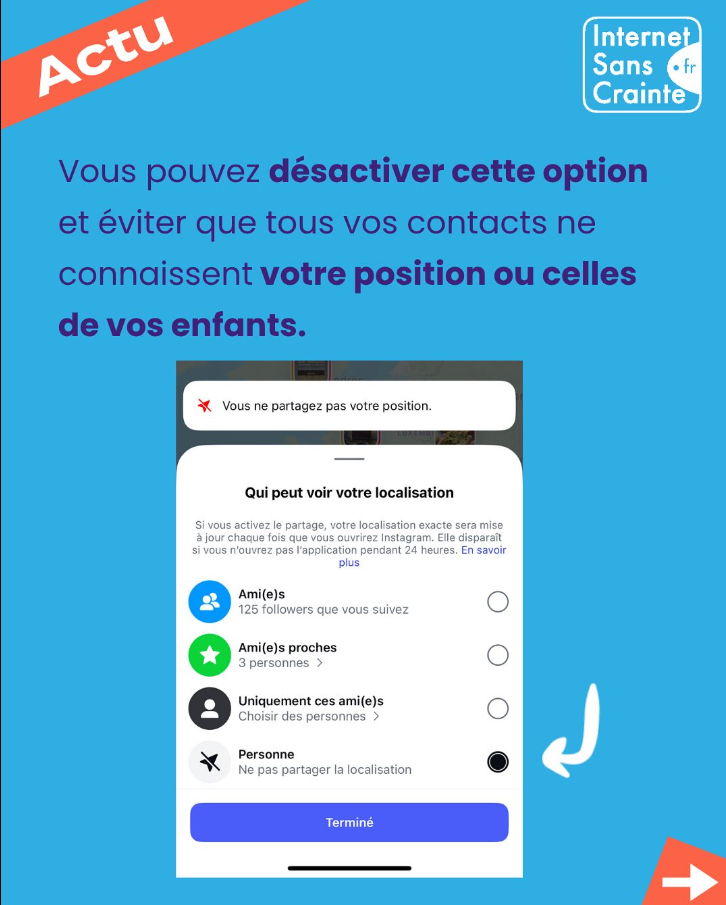 Un conseil : mieux vaut sensibiliser les jeunes à limiter le partage de leur position en ligne, même sans danger apparent.